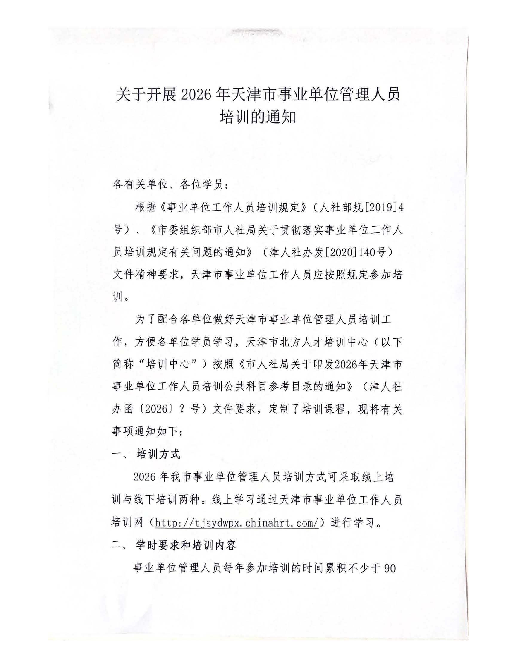 关于开展2026年天津市事业单位管理人员培训的通知
